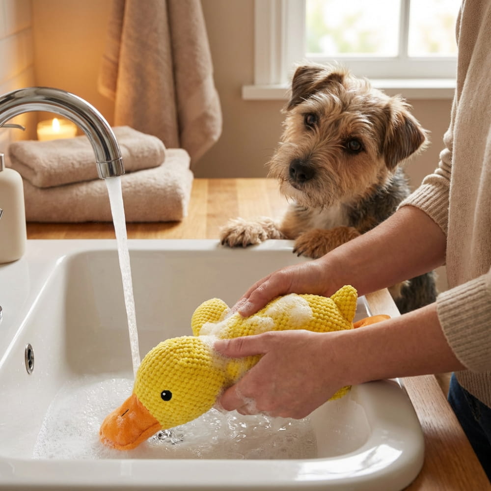So bleibt die Anti-Stress-Ente hygienisch, sicher und einsatzbereit für viele weitere Spiel- und Kuschelmomente.