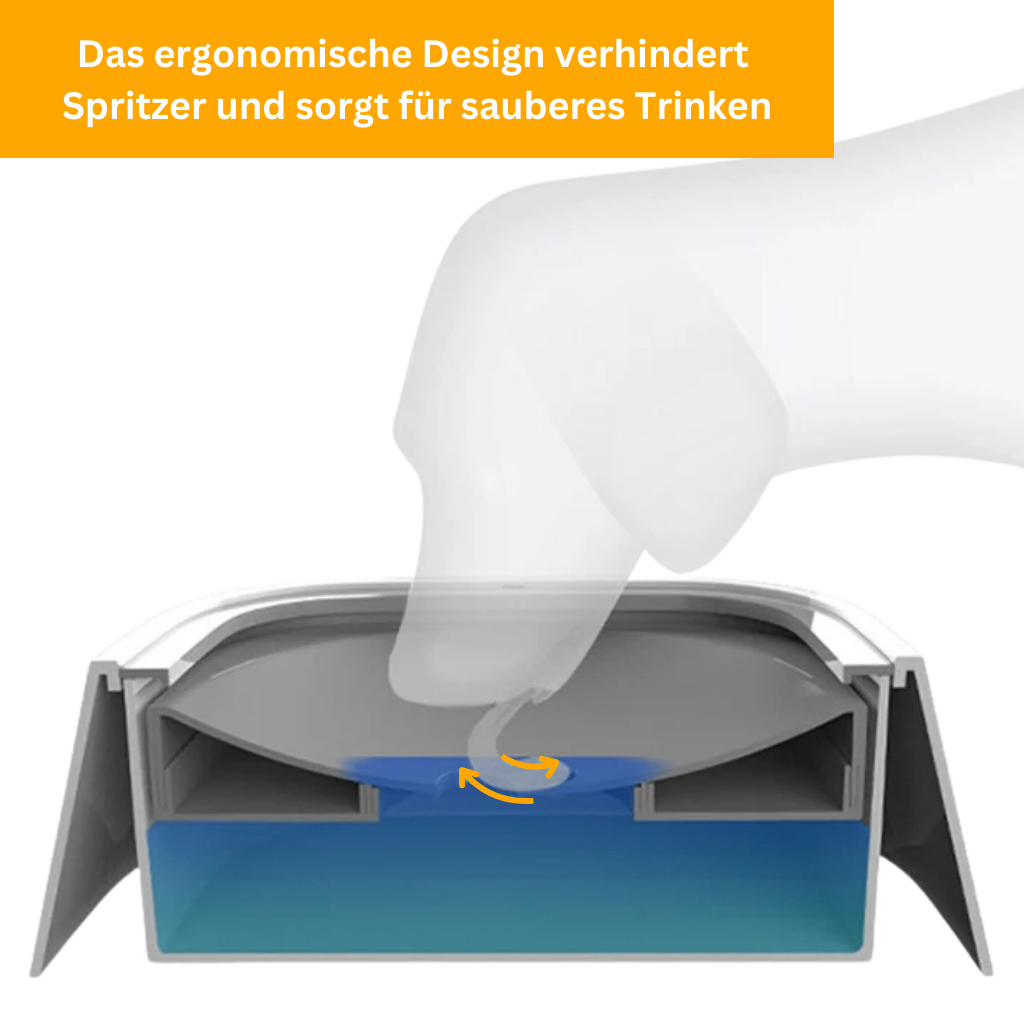 Unser Trinknapf bietet ein ergonomisch angepasstes Design, das nassen Speichel verhindert und ein sauberes Trinkerlebnis für dein Haustier fördert.