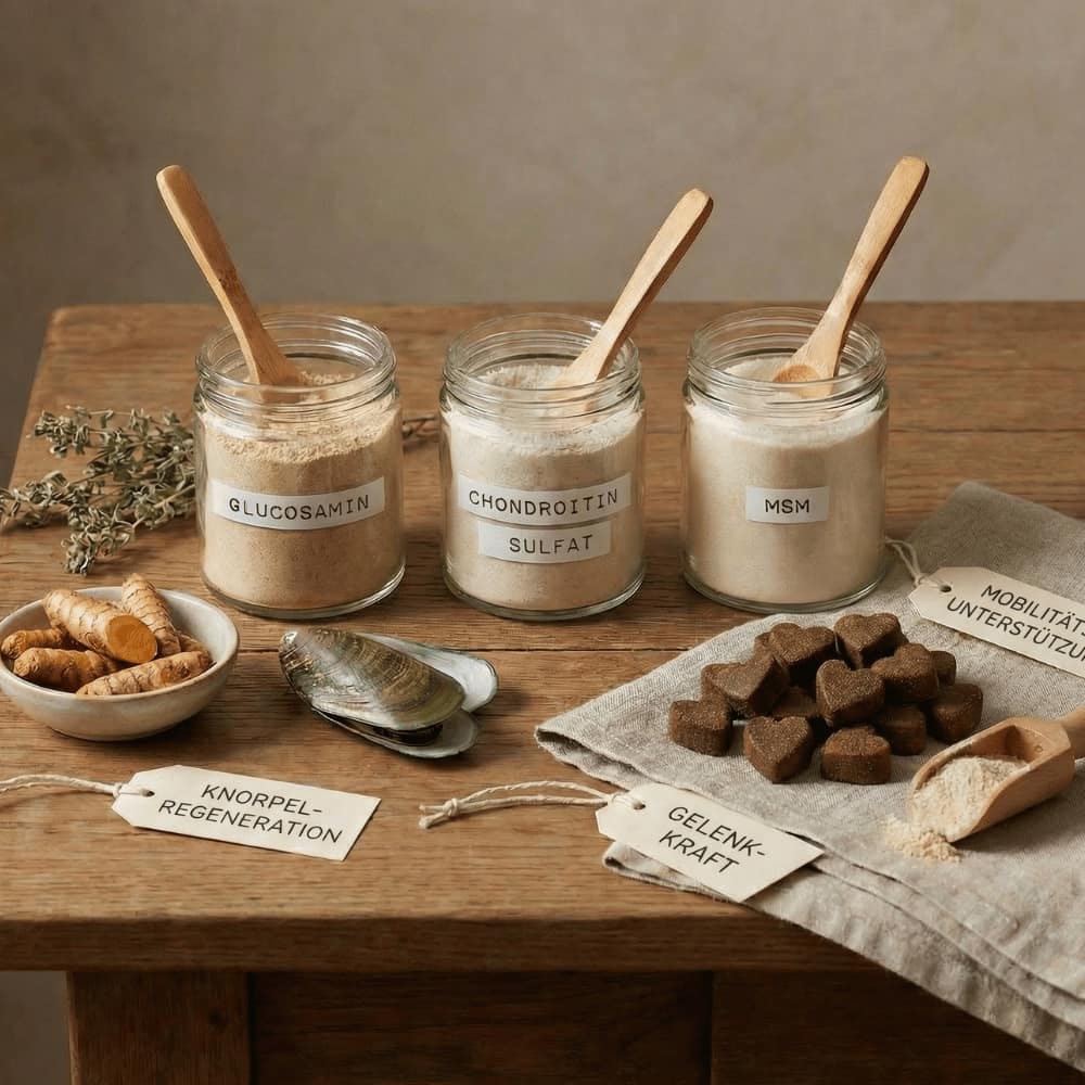 Sie tragen dazu bei, Gelenkbeschwerden wie Steifheit oder Schmerzen zu lindern und die Flexibilität deines Hundes zu bewahren.
