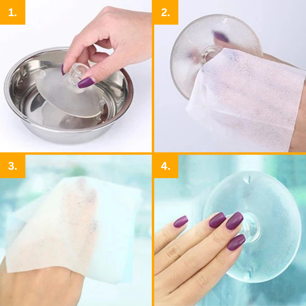 Die vier Saugnäpfe haften sicher an jeder glatten Oberfläche – ganz ohne Werkzeuge.