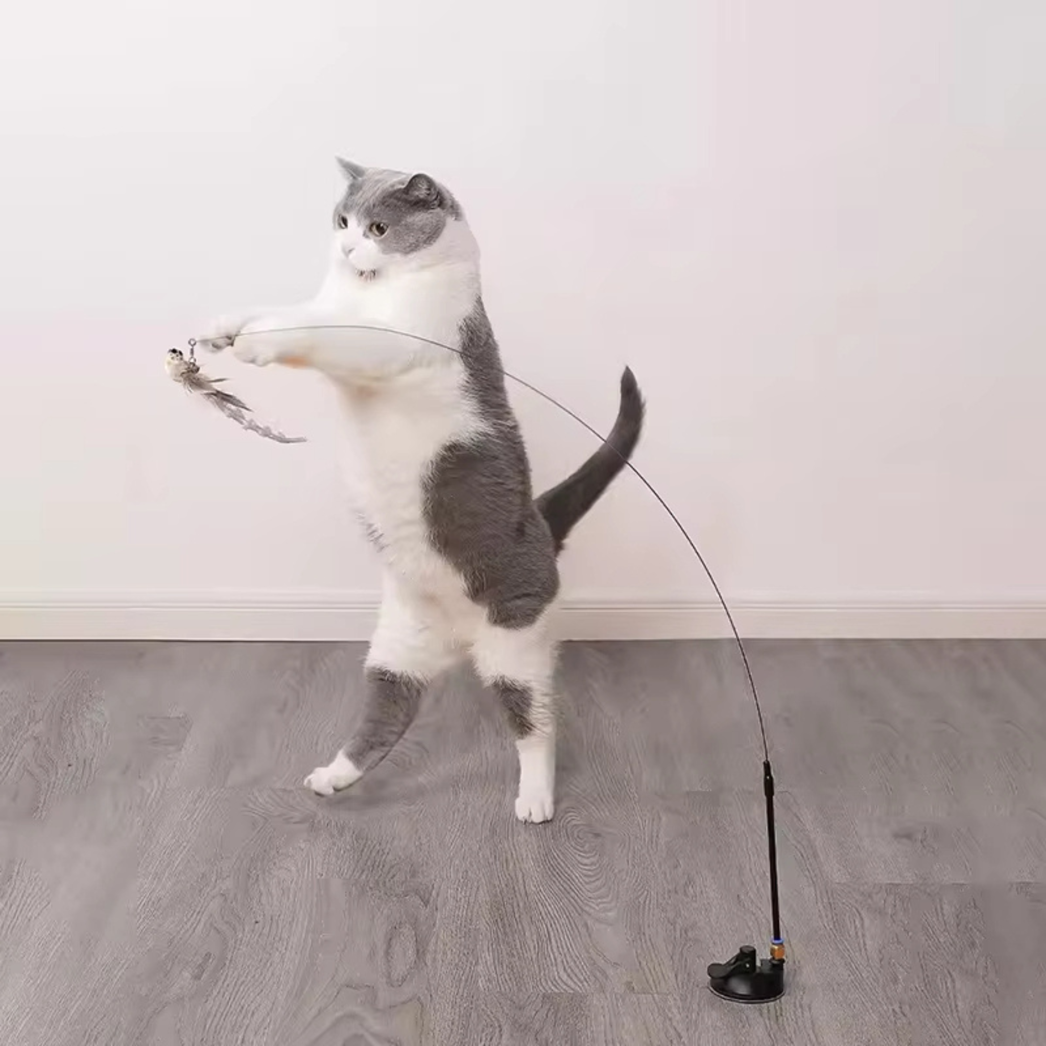 Halte den Stab in der Hand, um gemeinsam mit deiner Katze zu spielen, oder befestige ihn mit der verbesserten Saugfuß-Technologie 2.0 an glatten Oberflächen.